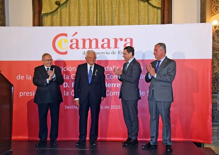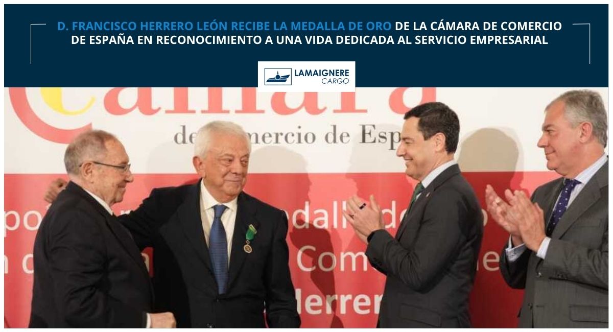 En un emotivo evento celebrado el pasado viernes 30 de enero, el presidente de Lamaignere, D. Francisco Herrero León, ha recibido la Medalla de Oro de la Cámara de Comercio de España, un reconocimiento a su extensa trayectoria y a su contribución decisiva al fortalecimiento del sistema cameral y del tejido empresarial sevillano y español.